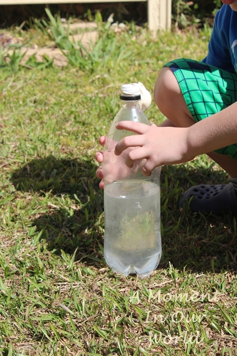 - The boys then took turns at lifting the balloon so that the bicarb soda fell into the bottle.