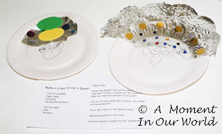 The boys made crowns for the Queen out of a cardboard plate and silver dollies and sequins.