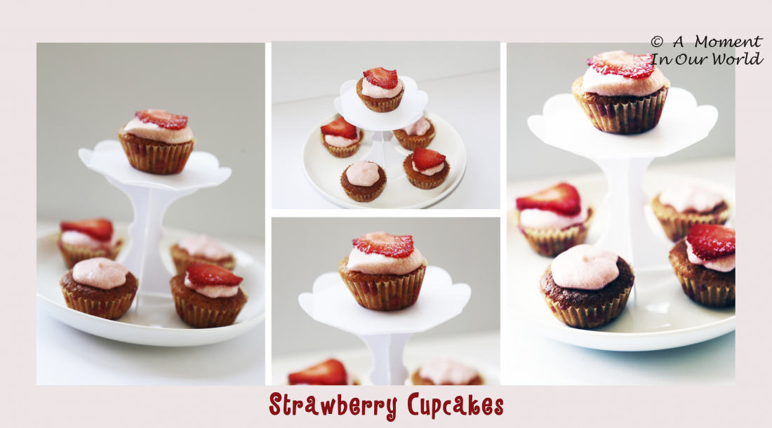 We bought a bulk lot of strawberries, but they needed to be eaten quite quickly. The boys asked about strawberry cupcakes and this is what we came up with.